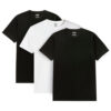 Kit pensado para quem vive de branco. São 2 camisetas brancas com tecido pré-encolhido para manter o tamanho após lavagens e 1 preta com tingimento anti-desbotamento — a dupla clássica do básico feminino.